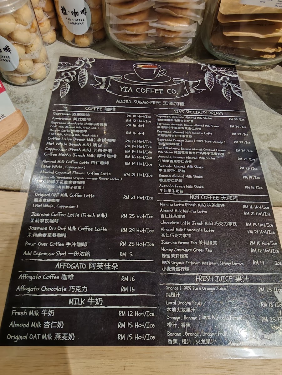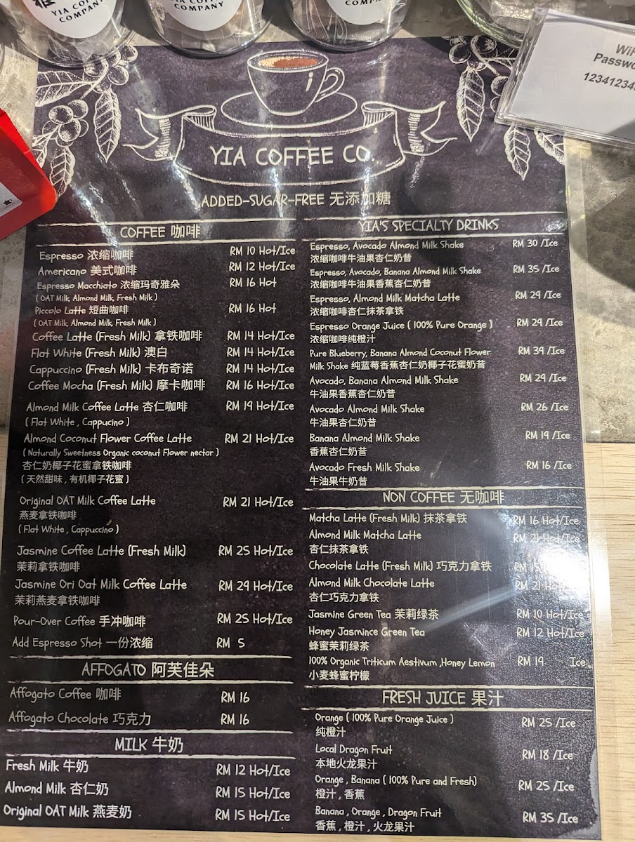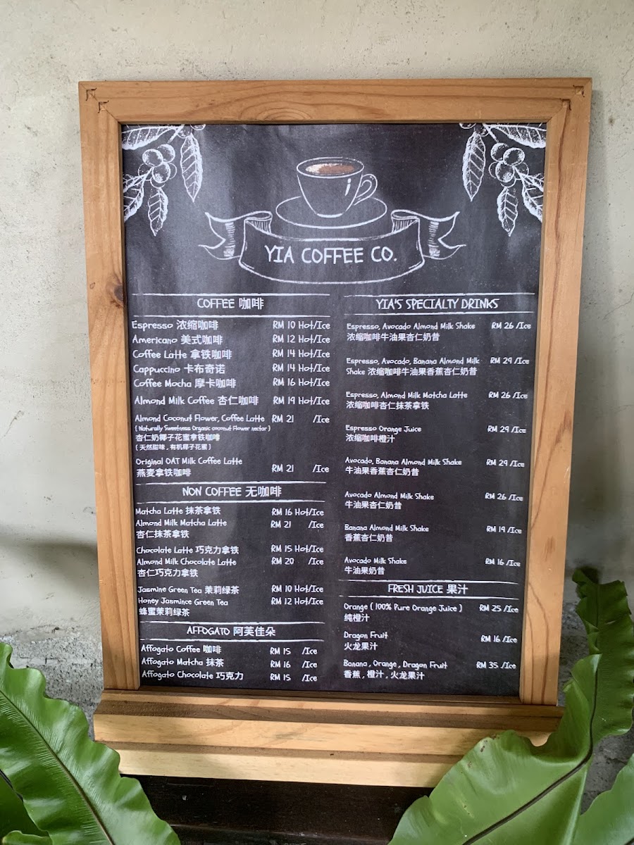 Yia Coffee Company Menu